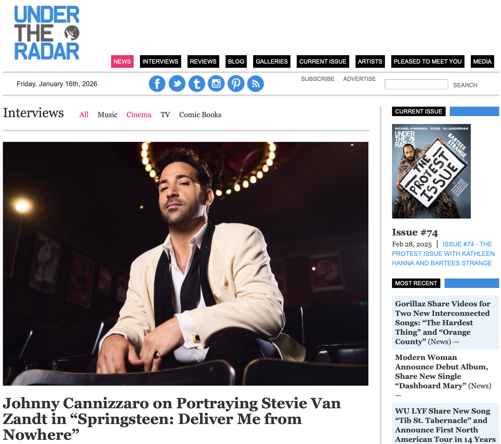 Johnny Cannizzaro made his feature film debut in Clint Eastwood’s Jersey Boys and will next be seen portraying legendary Jersey musician Stevie Van Zandt in 20th Century Studios’ Springsteen: Deliver Me From Nowhere, hitting theaters October 24, 2025.